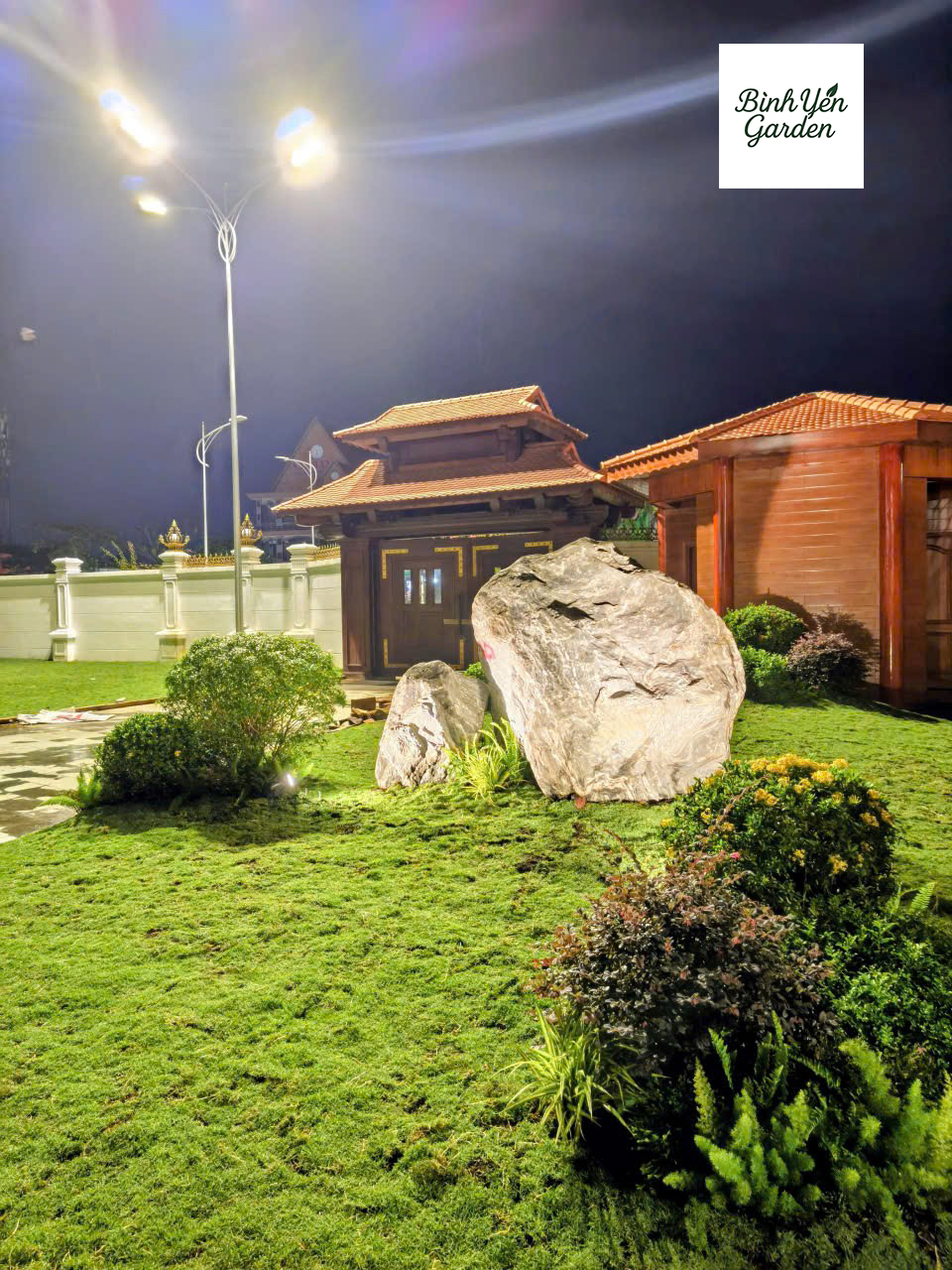 Bình Yên Garden thực hiện các hạng mục như lối đi sân vườn, lát đá, sỏi trang trí, xây bồn cây, chòi nghỉ, pergola và các công trình ngoài trời. Những yếu tố này góp phần định hình bố cục và tạo điểm nhấn kiến trúc cho toàn bộ không gian.
